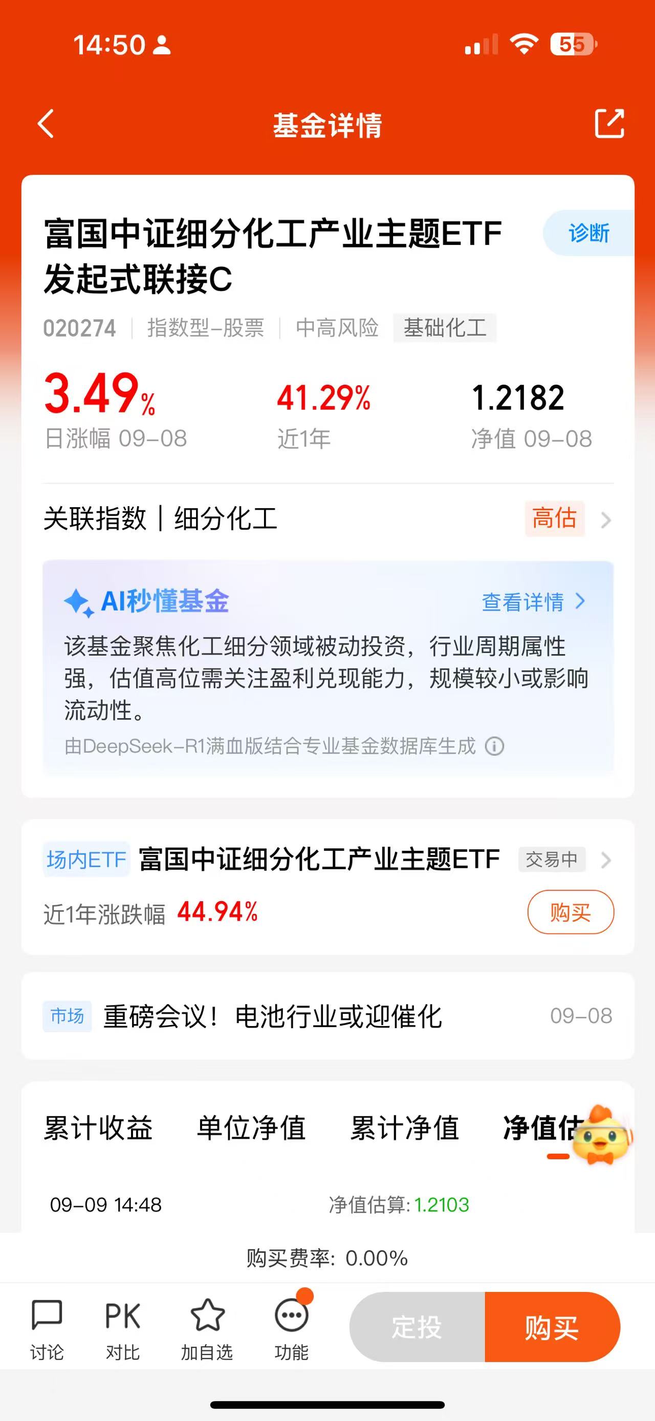 所以当下的化工,不管是短线也好,还是中长线也罢,都是一个不错的机会。$富国中证细分化工产业主题ETF发起式联接C(OTCFUND|020274)$基金一键布局化工行业龙头、捕捉行业整合和出海机遇的便捷工具,作为指数型基金,管理费和托管费相对主动管理基金更低,C类份额通常无申购费,更加适合波段操作或短期持有,想要抓住化工机会的,一定要多多关注啊!