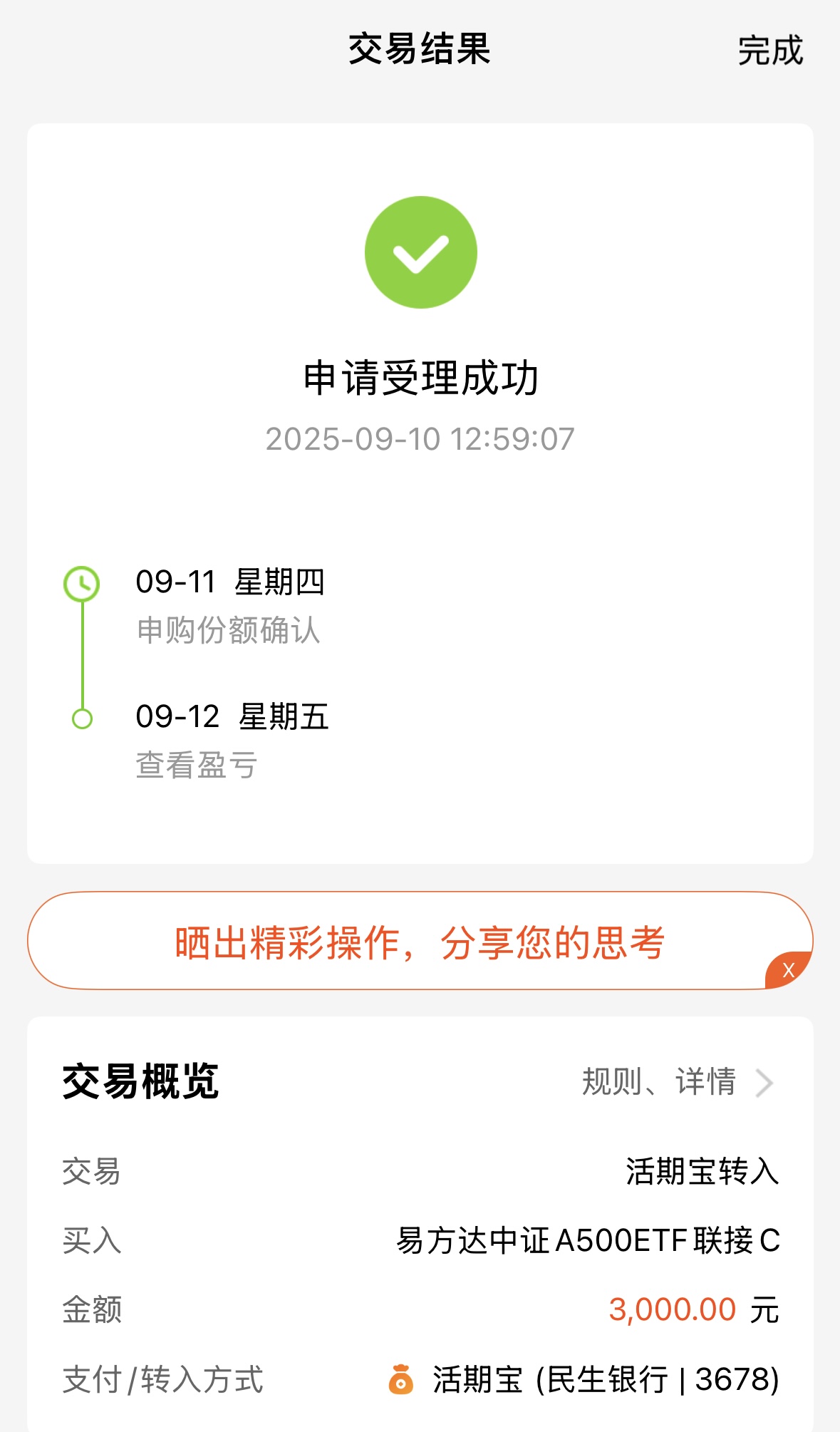开盘了,下午的局面不错哈!我今天狠狠回血了。CPO卷土重来能否持续,不确定,我加仓宽基指数,上车$易方达中证A500ETF联接C(OTCFUND|022460)$,行情轮动加速,今年以来A500稳步上涨15%,显著跑赢沪深300,宽基指数对于震荡行情的适应性就很强,有效分散了科技与消费板块的轮动风险,同时通过行业分散特性规避个股黑天鹅风险。CPO我先考虑下,不着急追。