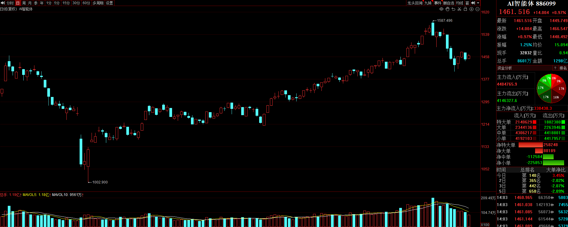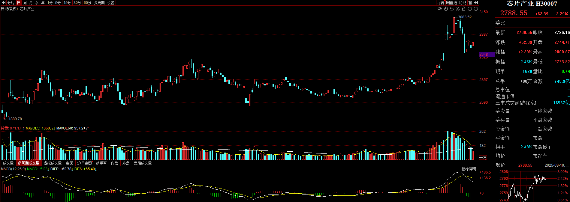 2025年8月底国务院发布了《关于深入实施“人工智能+”行动的意见》,目标是到2027年AI与重点领域深度融合,智能终端普及率超70%,2030年普及率超90%;工信部也表态要出台“人工智能+制造”专项政策,直接利好AI在工业领域的应用,所以我坚信今年的科技牛还降继续。9月以来,人工智能指数出现调整,但近期的行情已经在20日均线止跌反弹。今日的行情直接高开站上了5日均线,虽然盘中有震荡,但止跌回暖的趋势是有了,所以趁着现在有买点,我继续顺势加仓了。