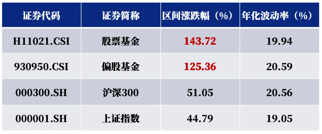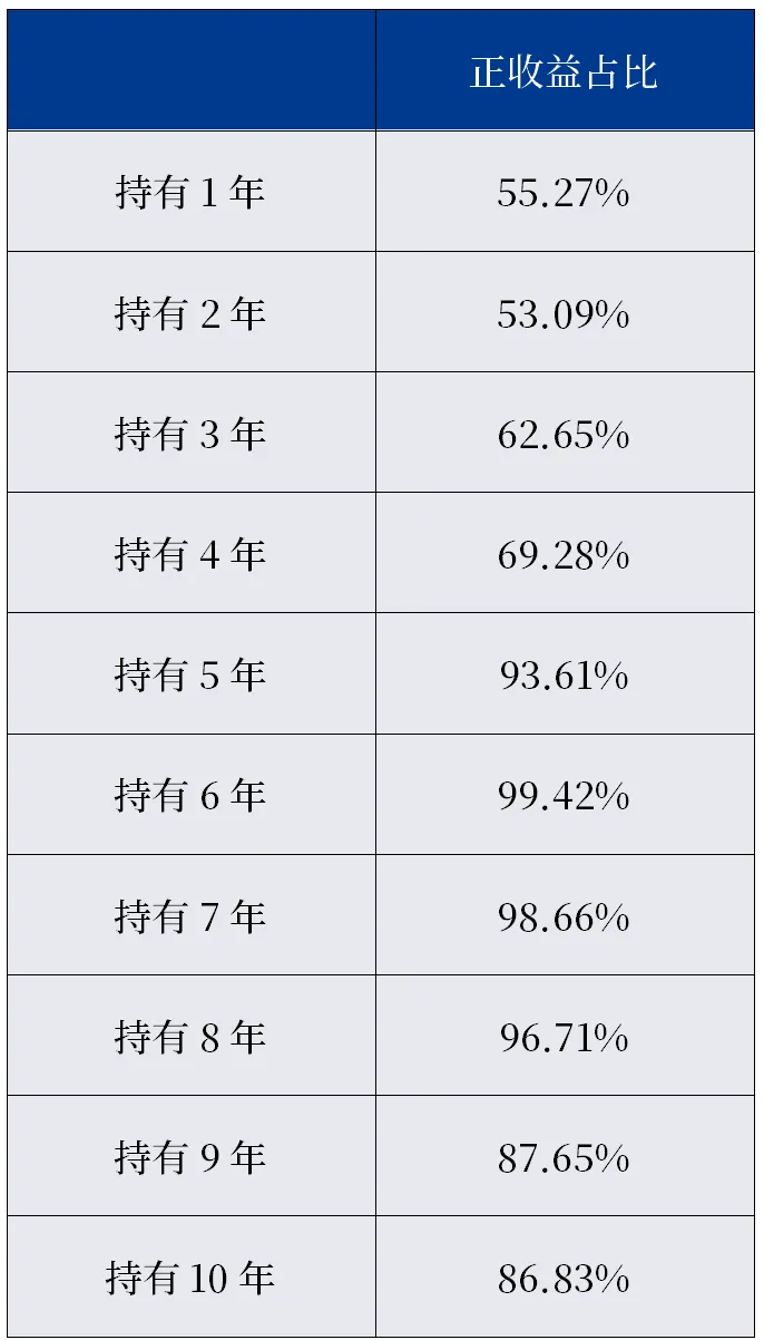 数据来源:Wind,2014年8月22日-2025年8月22日。风险提示:历史业绩不代表未来表现,基金投资须谨慎。偏股基金指数发布时间为2017年4月27日。计算公式:收益率=(持有最末当日的偏股基金指数收盘价-持有期最初当日的偏股基金指数收盘价)/持有期最初当日的偏股基金指数收盘价,正收益占比为持有期间收益率大于0的天数/持有期总天数。