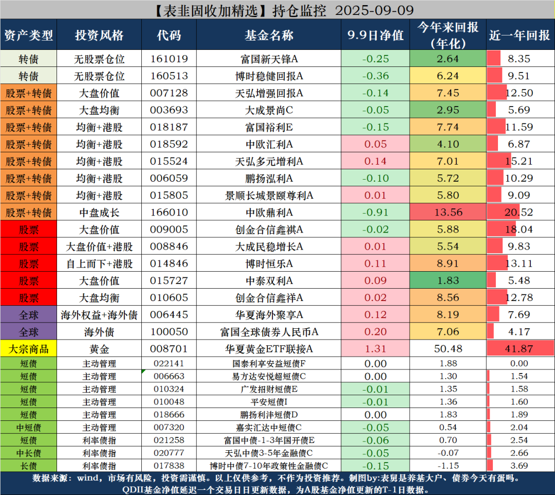 昨日,在市场回调的情况下,表韭固收加,净值收平,主要还是配置比较均衡,且黄金、美债相关的多元资产,近期持续提供了比较多的超额。