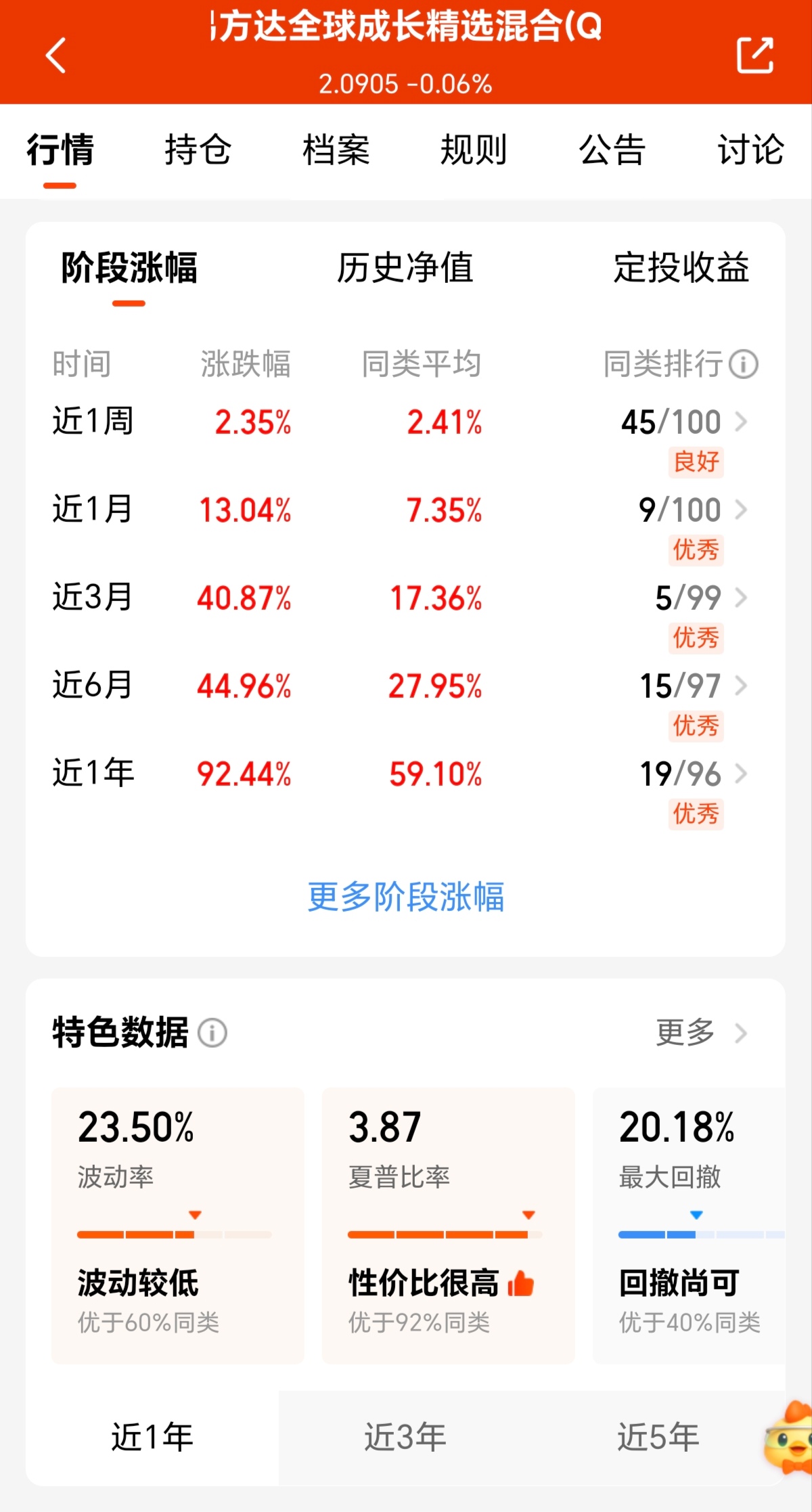 隔夜美股市场继续上涨,今日A股呈现大涨趋势,科技更是带来一路领先行情,而想要把握住这波全球科技机遇,我会选择入手$易方达全球成长精选混合(QDII)人民币A(OTCFUND|012920)$这款基金运用全球科技投资策略,近一年涨超92.44%,业绩排名相当亮眼,同时还可以把握住多个市场的科技成长机遇,基金经理能力更是出色,重仓股与市场趋势高度集合,同时及时调仓减少基金波动,具有精准预判和灵活调仓能力,我也准备上车一波,跟住基金经理安心吃肉!