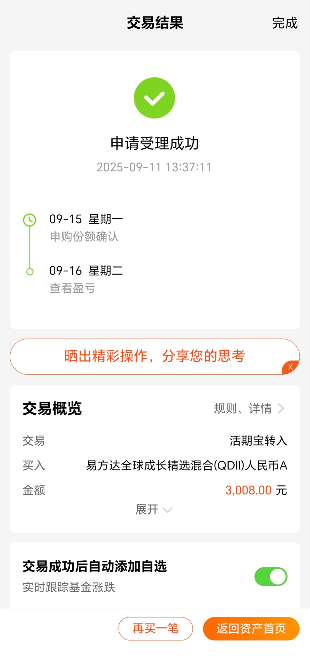 今日市场科技板块继续吃肉,市场情绪越发向好,而我觉得科技长期行情仍在,无论是海内外都有很大机会,所以我准备入手$易方达全球成长精选混合(QDII)人民币C(OTCFUND|012922)$,近期业绩走势非常强势,近一年涨幅高达92.44%,远超同类基金涨幅,持仓策略以全球科技布局为主,灵活规避政治风险,还可把握多个市场行情机遇,考虑到后期行情趋势,我也准备入手一波!