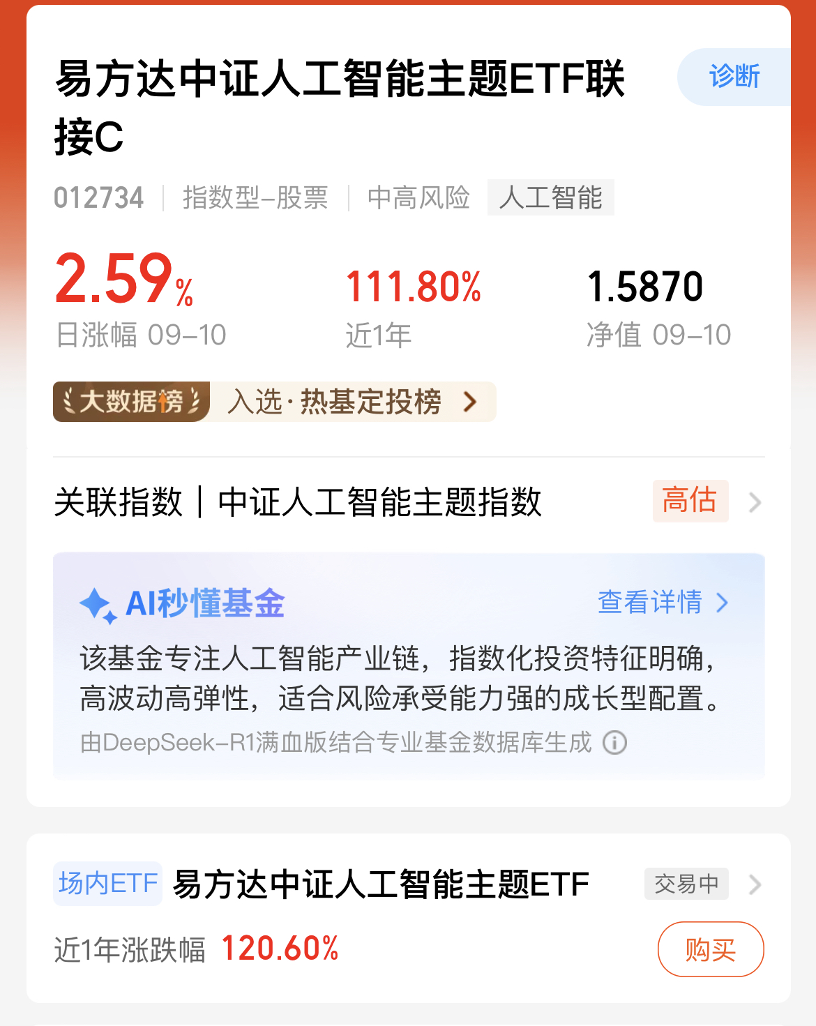 今日,科技板块再度掀起热潮,人工智能作为其中的核心赛道,发展前景一片光明。我也打算加仓$易方达中证人工智能主题ETF联接C(OTCFUND|012734)$