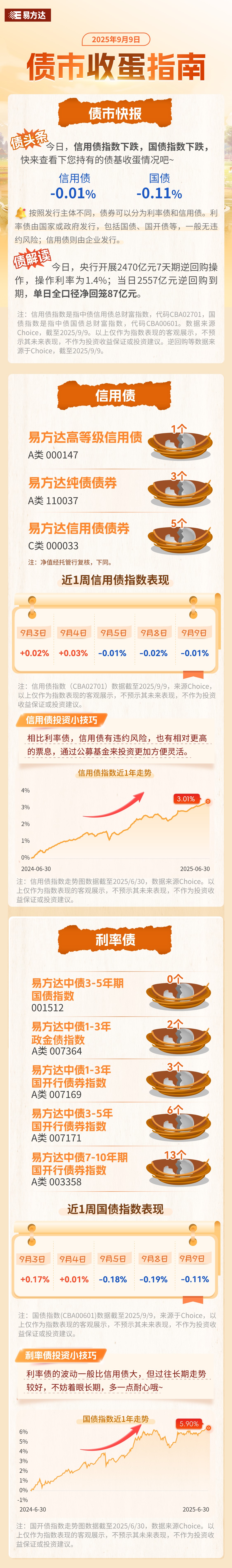 【债市收蛋指南】9月9日,信用债指数下跌、国债指数下跌