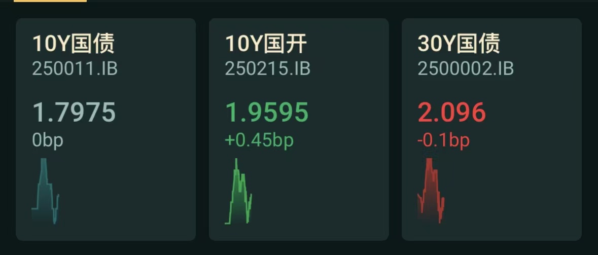 30年期国债活跃券收益率:下行0.1bp,报2.096%。