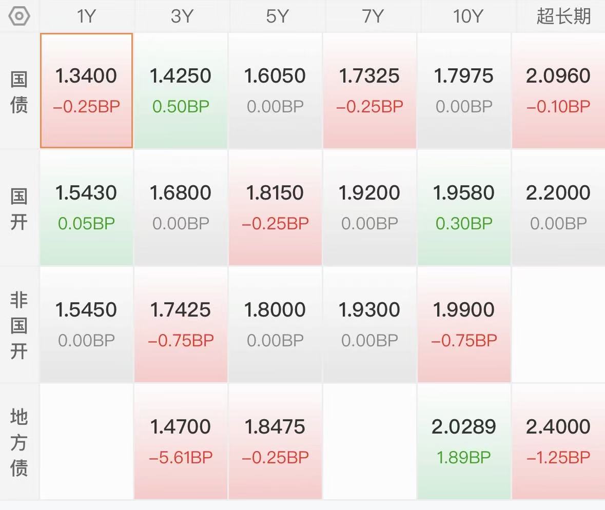 10年期国开活跃券收益率:上行0.45bp,报1.9595%;