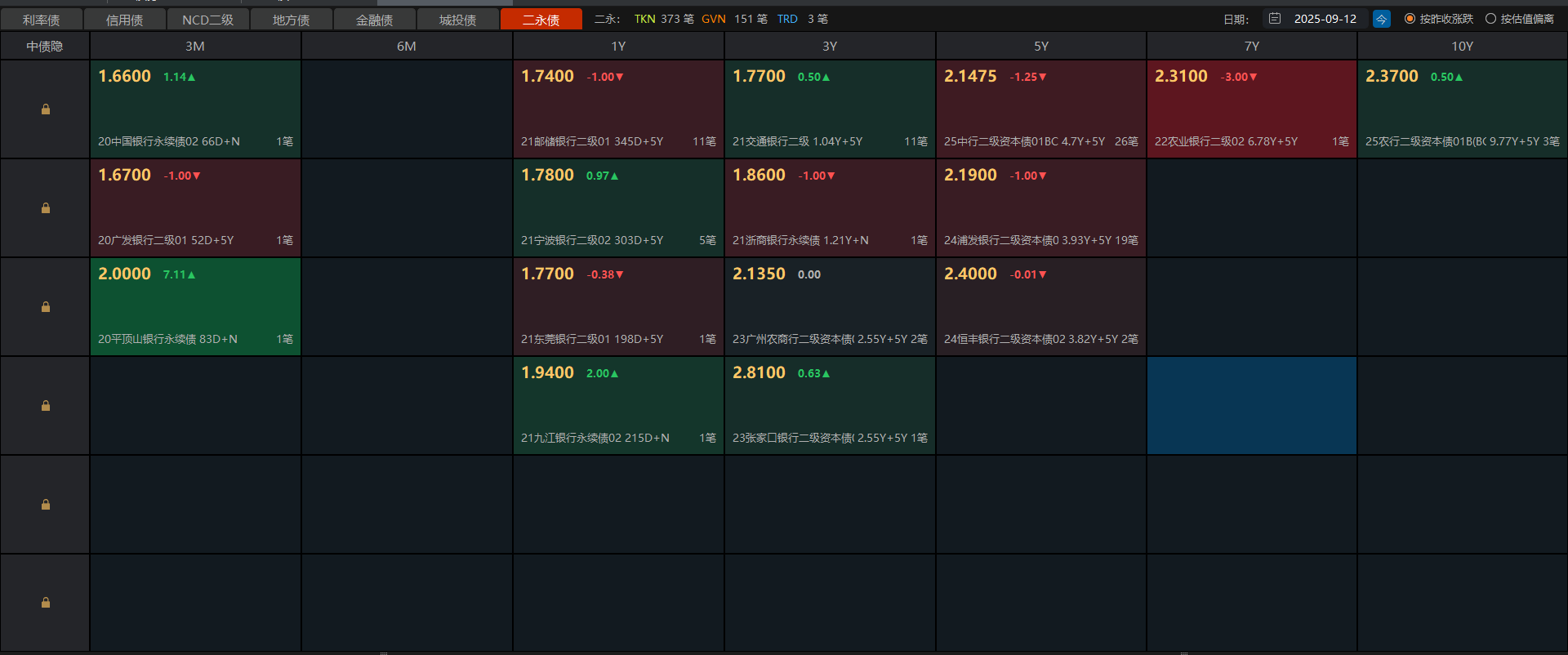 09月12日债市午间天气播报:上半场收盘,盘中震荡起起落落。隔壁大盘个股三千多家飘绿,好在科创芯片、有色金属延续强势,可转债和小微盘股也有不错表现。债市这边拉得早了点,后续走势还有悬念,但这个位置不用太慌。今天主要靠基金和证券是买方主力,下午只要不卖出,问题就不大。午间:利率债短端偏弱,7 - 10年期大概收蛋5个左右,超长期国债轻仓收22 - 27个蛋,重仓的话能到28- 34个蛋。先午睡,等下午再看,尾盘估计还得震荡,潮水退去才知道谁在裸泳。