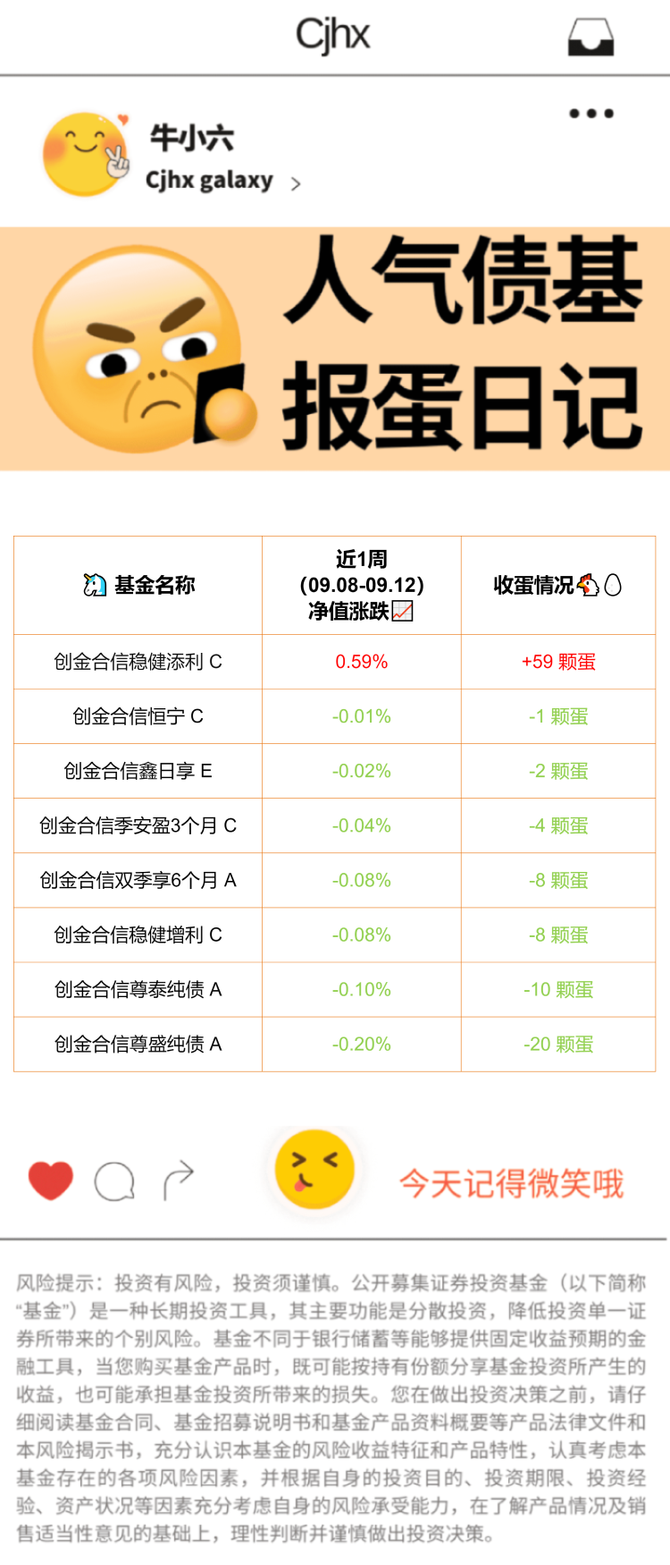 新的一天来咯!!→_→看看近一周(09.08-09.12)热门债基业绩如何吧?