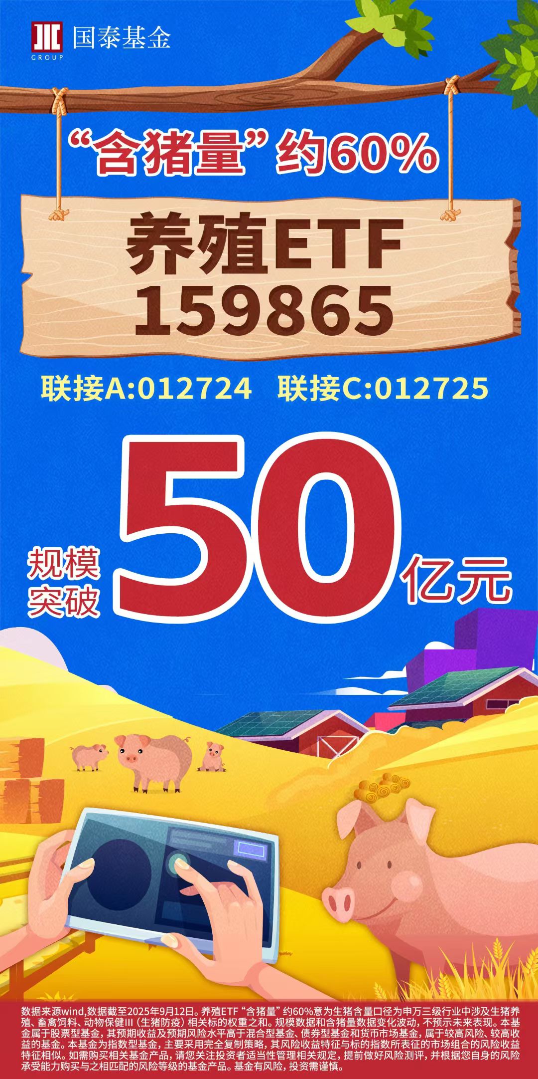 国泰养殖ETF规模超50亿元,“含猪量”约60%!