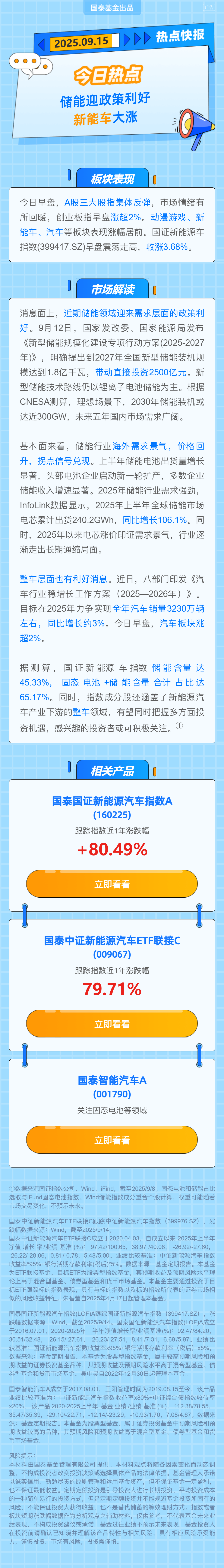 $国泰智能汽车股票A(OTCFUND|001790)$$国泰国证新能源汽车指数C(OTCFUND|014997)$$国泰智能汽车股票C(OTCFUND|011323)$$国泰国证新能源汽车指数A(OTCFUND|160225)$$国泰中证新能源汽车ETF联接A(OTCFUND|009067)$$国泰中证新能源汽车ETF联接C(OTCFUND|009068)$