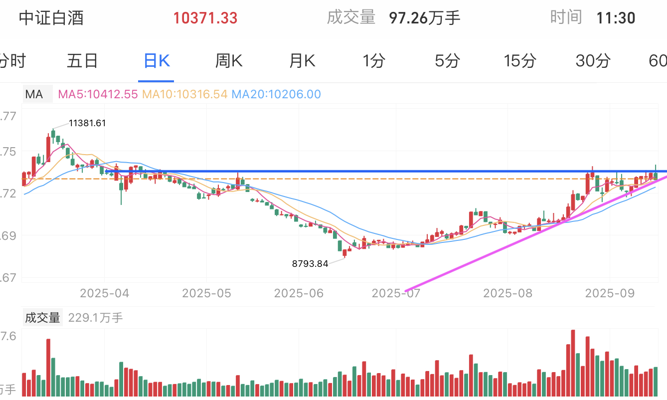 白酒、房地产近期一直底部盘整,最近反弹,白酒受阻于前高压力位,这几日一直在压力位震荡不前。房地产在上涨趋势线附近止跌反弹,此前突破压力位,但今日回落,仍处于缓步震荡上行行情。
