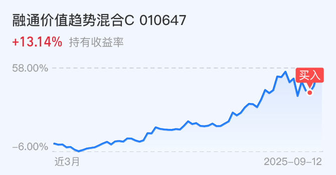 今日加仓3000元。这几日大盘震荡加剧,热点快速轮动,操作难度不小。相比之下,优质混合基金能在波动中兼顾灵活与进攻性。融通价值趋势作为均衡配置型基金,重点布局AI算力、创新药、新消费、新能源等核心成长方向,近一年收益率超117%,同类排名领先。近期走势依旧强势,回调抗跌、反弹迅速,展现出较强修复力和持续性。当前震荡市里更显配置价值,因此继续定投。非投资建议。