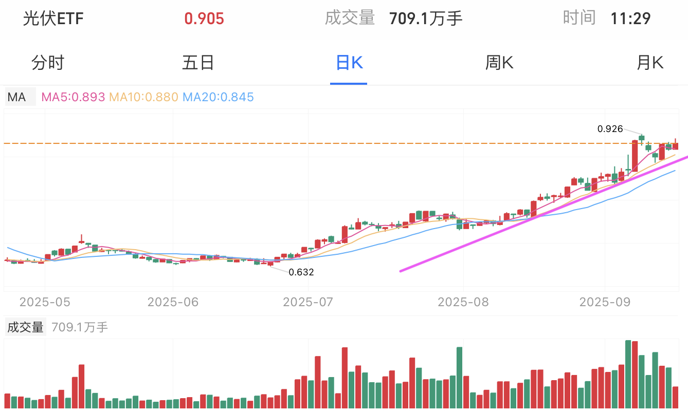 光伏和电池近期有一波上涨,前些日子涨幅过大,力竭回调。这两日再次止跌反弹,电池还突破压力位,打开上行通道,光伏今日也反弹,只是交易量略显不足。