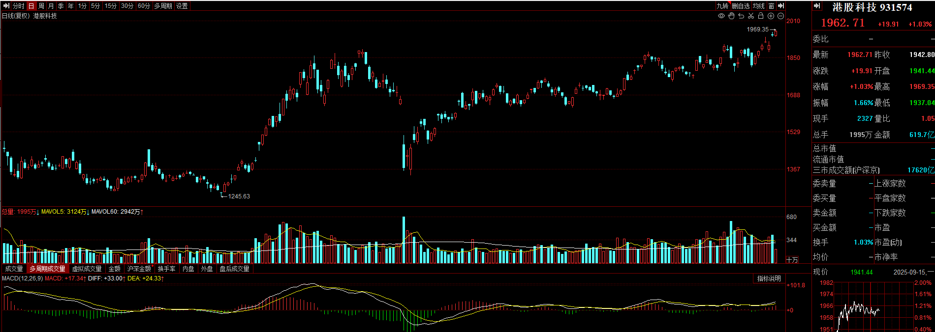 港股科技高开震荡,指数涨幅不大,但短期已经创了新高,既然行情已经突破箱体震荡,所以我坚信港股科技行情还会继续,当下继续格局。