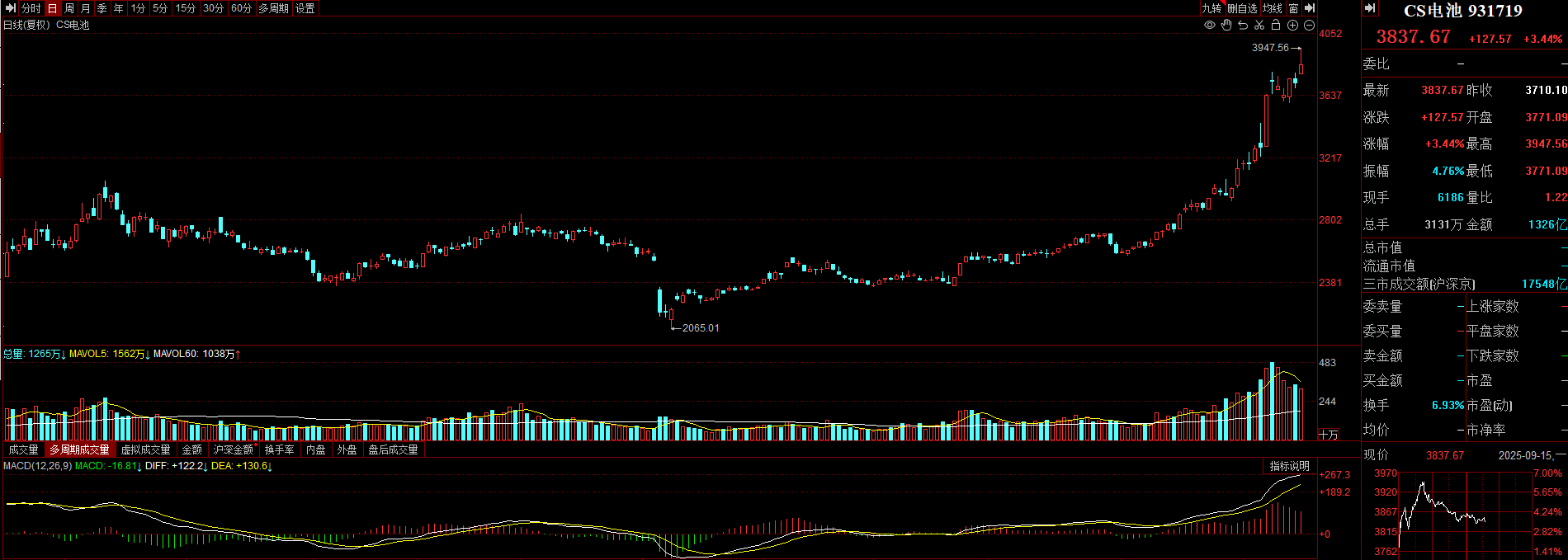 CS电池继续冲高,最高涨超6%,虽然盘中有回落,但不会改变当下的多头趋势,所以电池依然是继续格局,也可以顺势考虑做点加法。