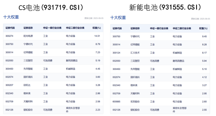 且对比前十大成分股来看,中证电池指数聚焦储能与动力电池两大黄金板块,其中第一权重股光伏逆变器龙头占比达14.51%,其余标的指数不含该成分股,此外还涵盖全球动力电池龙头、固态电池先行者等优势企业。