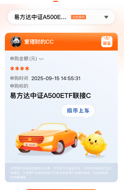 哎呀妈呀上午KTV下午ICU啊!我的预估收益都绿了,大跳水,那么现在打算加均衡方向,$易方达中证A500ETF联接C(OTCFUND|022460)$,A500这个指数我觉得非常好,有价值股有成长股,比较全面了,进入9月,明显感觉到大风车行情,行业轮动加速,均衡宽基指数拿着不心跳,今年以来A500稳扎稳打上涨18%,业绩不错的了。