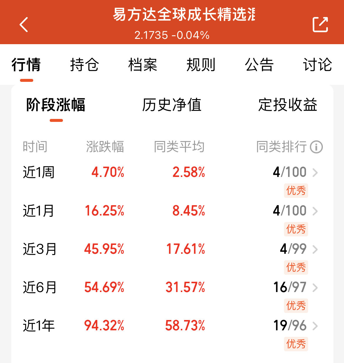 最近全球市场不太稳定,科技股也跟着起伏,但科技领域的长期投资价值仍在。$易方达全球成长精选混合(QDII)人民币C(OTCFUND|012922)$,它能投资A、H、美股的科技股票,既能灵活规避不同市场的政治风险,又能在今年各地科技行情不同的背景下,抓住多市场的成长机会。