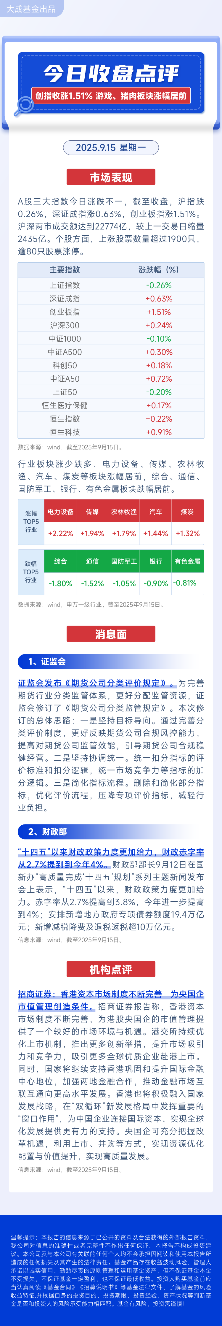 收盘点评:创指收涨1.51%,游戏、猪肉板块涨幅居前