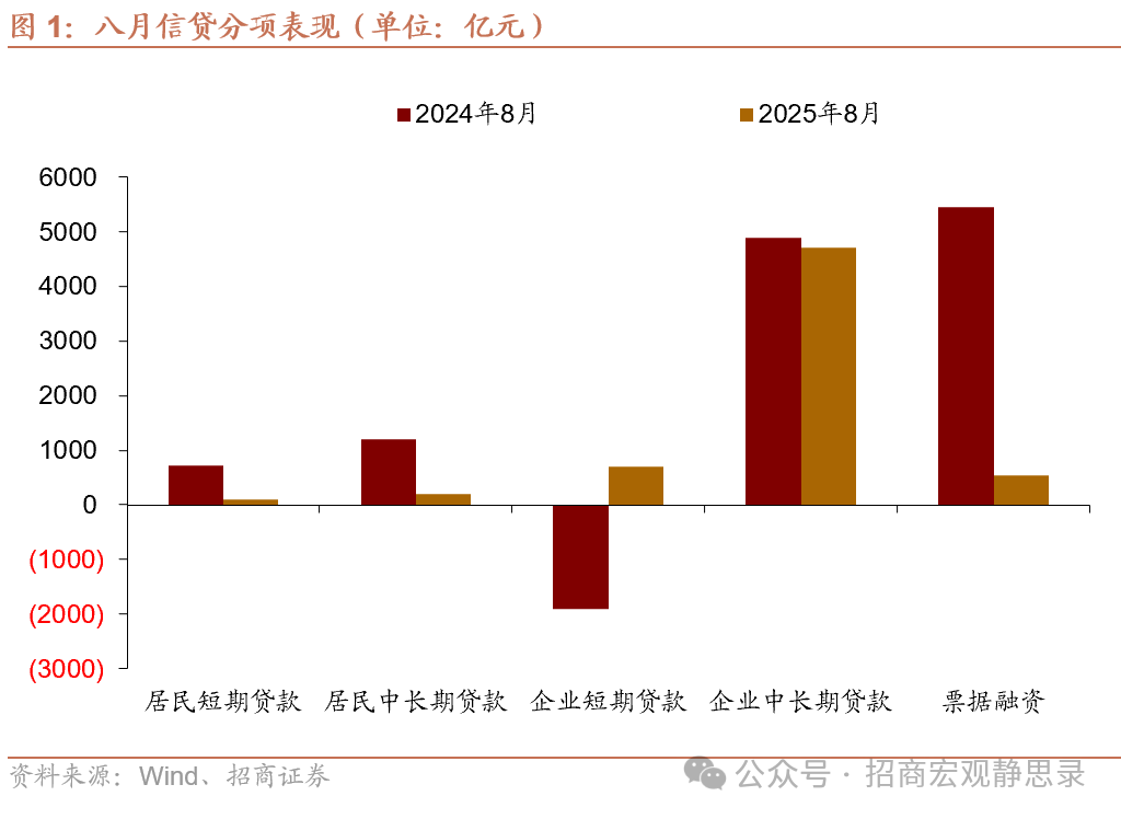 2、新增人民币贷款,环比7月多增6400亿元。数据背后反映贷款比7月明显增多,主要是信贷投放季节性回升,不过结构上,企业和居民的长期贷款意愿依然偏弱。