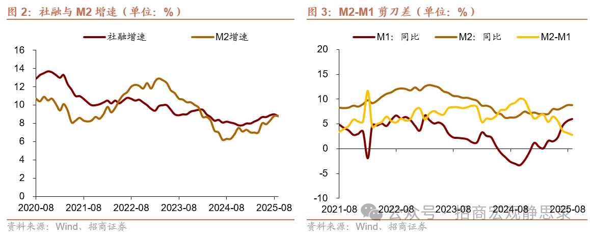 总结来说,8月金融数据呈现出总量趋稳、结构分化、活力微升的特点。亮点是M1增速持续回升,同时信贷投放环比明显改善,说明边际改善,经济活力有所增强。不足的是社会融资增速小幅回落,以及企业和居民中长期贷款需求仍显不足,说明实体经济面临的压力依然存在。接下来重点关注,随着政策的持续发力,能否有效激发企业和居民的借贷需求,推动经济转暖,或将决定行情的高度。