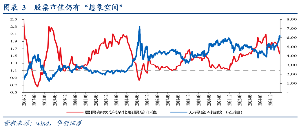 (数据派强调:有图有真相,从历史来看,当存款与股票总市值下行阶段,股市往往表现比较高,当前处在起步阶段,仍有想象空间)