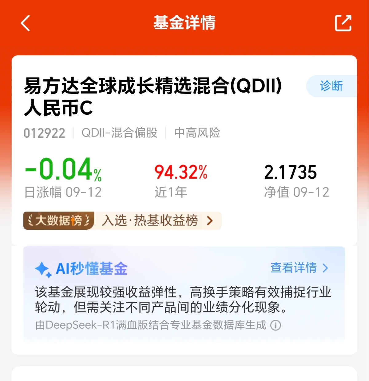 今日A股港股市场两地整体表现较为稳定,科技赛道更是带来领跑行情,而美股市场近期也涨幅优秀,想要同时把握三地行情,我会选择$易方达全球成长精选混合(QDII)人民币C(OTCFUND|012922)$加仓布局起来,这款基金一键打包A股、港股、美股科技赛道,在当前市场中极具稀缺性,近一年涨幅更是高达94.23%,远远跑赢同类产品,从走势上来看涨多跌少,我觉得当前是不错的入手机会,我先继续上车一波了!