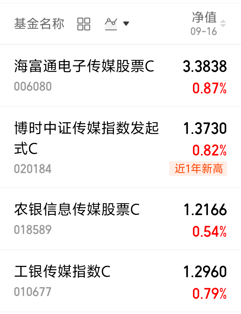 $工银传媒指数C(OTCFUND|010677)$今天涨了0.79%