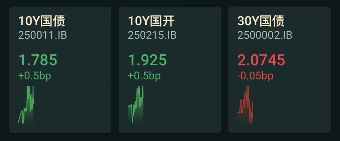 10年期国债活跃券收益率:上行0.5bp,报1.785%;