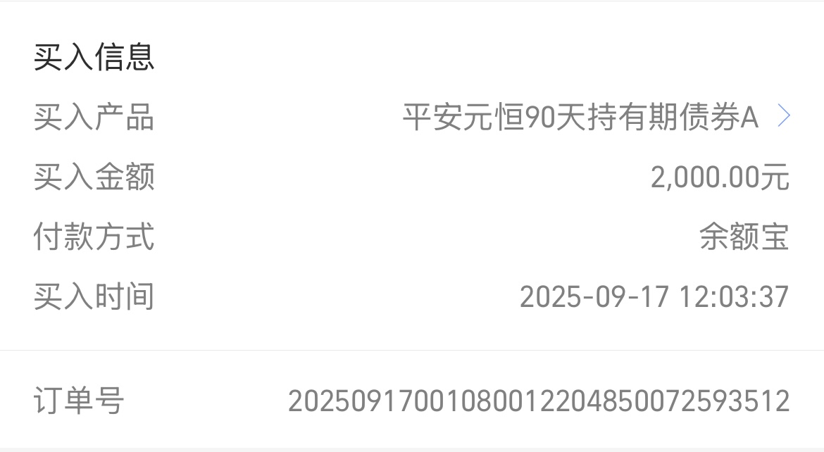 一、加仓2000元$平安元恒90天持有债券A(OTCFUND|021574)$