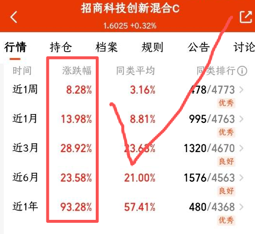 9月市场行情无疑是科技赛道主线了吧?我准备跟着这一步上涨行情,像$招商科技创新混合C(OTCFUND|008656)$短期业绩爆发力很不错,近1年收益93.28%排名同类前11%,做为主动管理基聚焦科技产业,重仓半导体,还配置电子、计算机等科技创新领域,可以说行业成长性还是很明确的,感觉市场后续潜力十足,拿稳吃肉咯~