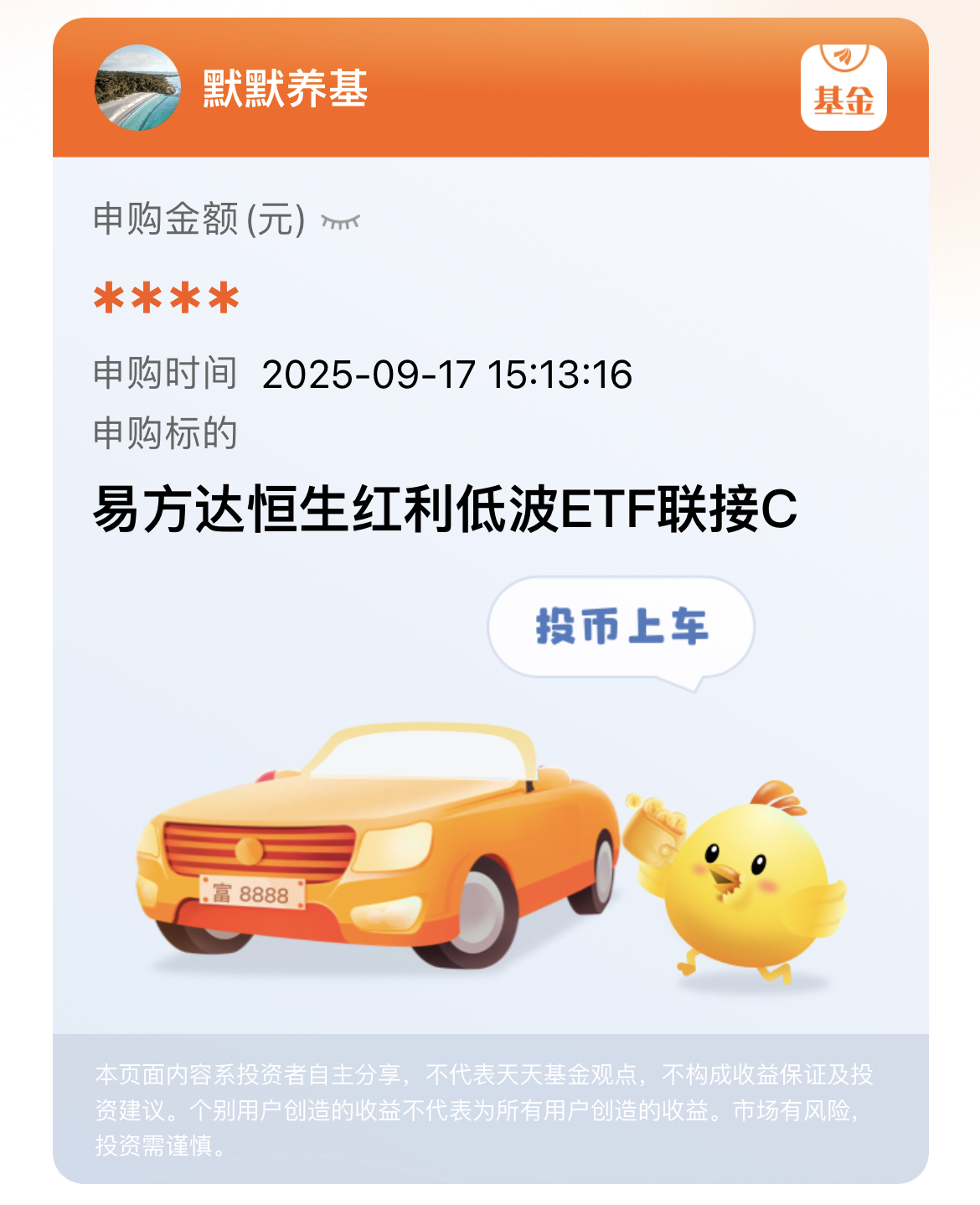$易方达恒生红利低波ETF联接C(OTCFUND|021458)$紧密跟踪相关指数,能精准把握港股红利投资机遇。趁现在市场机遇显现,我也打算布局起来,期待在这波红利行情里收获满满,分享港股市场的成长红利。
