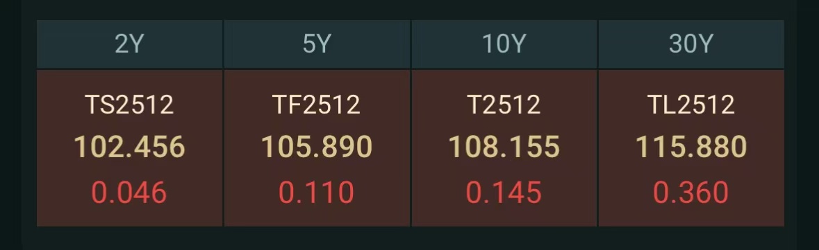 5年期主力合约涨0.11%;