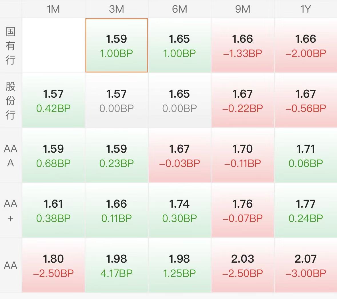 同业存单:阴。