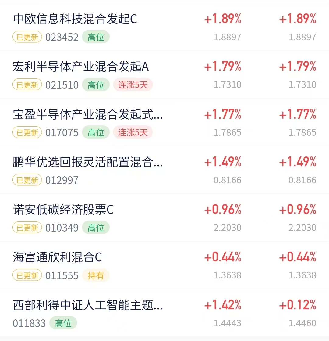 今天整体市场情绪还是可以的,尤其是我看今天的科技赛道持续发力谁能不爱呀,咱就说后面科技赛道是不是还有的期待呢~我看$中欧信息科技混合发起C(OTCFUND|023452)$今天收涨1.89%,近1周收涨8.32%这一波上升行情还是很不错的。