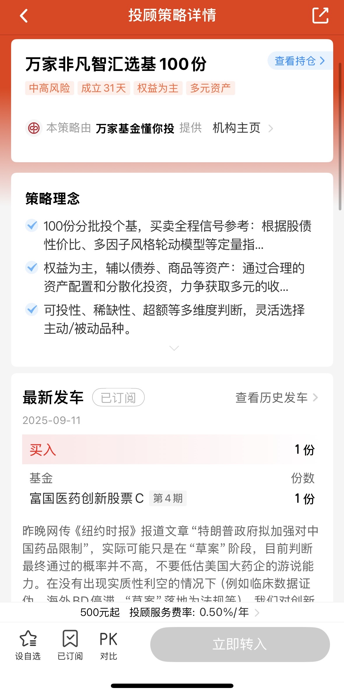 大家可以点击一下这里的链接 $万家非凡新质驱动$, $万家非凡智汇选基100份$