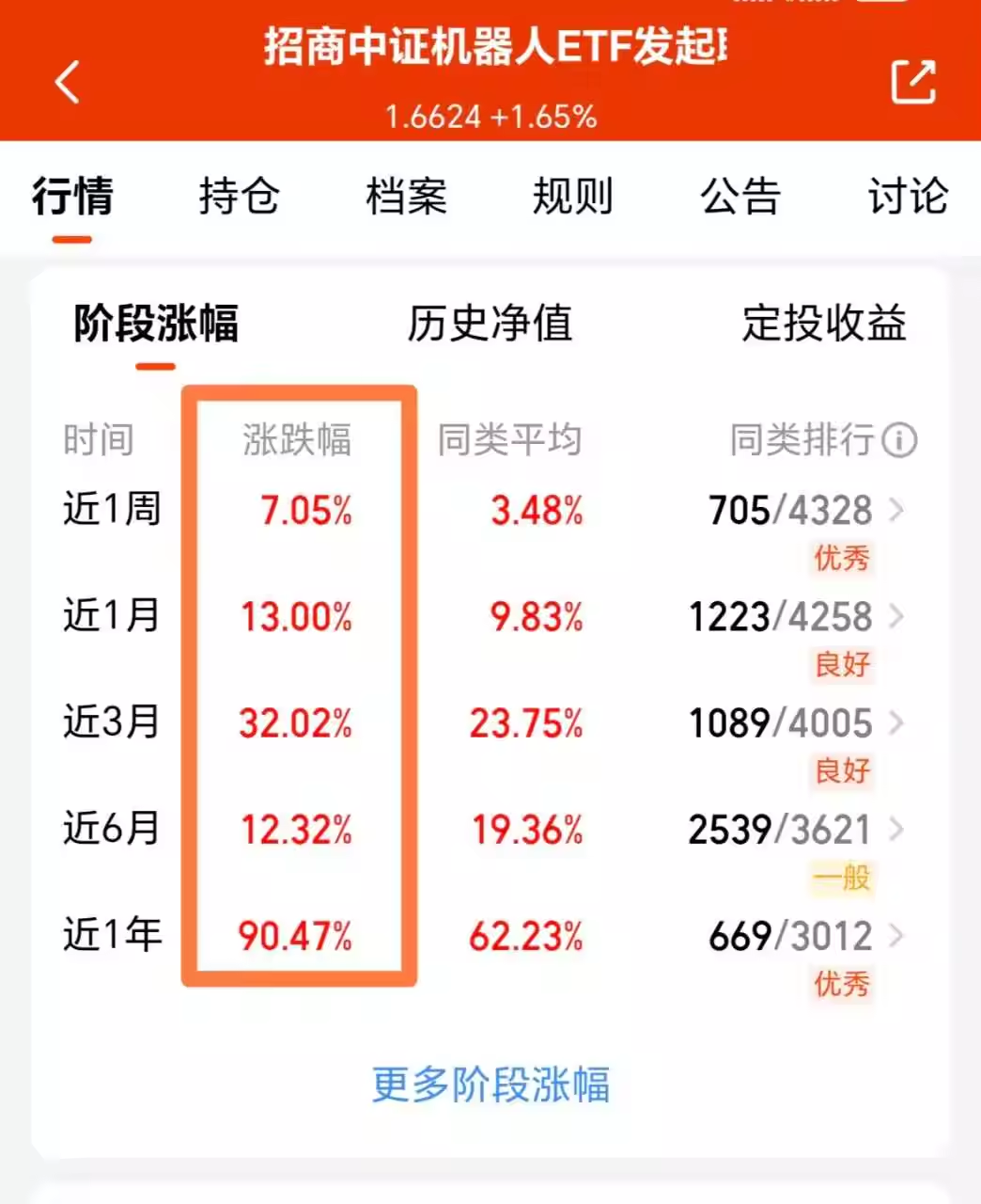 今日大盘行情火热,机器人赛道也再次强势上涨,近期这波连续上涨趋势,真的是太香了!而马斯克对特斯拉市值上涨的诉求很强,非常重视人形机器人的进展和出货,由此可以看出,后续机器人的利好将会不断释放,我也准备顺势布局$招商中证机器人ETF发起联接A(OTCFUND|020481)$这款基金聚焦机器人产业链,目前实时估值大涨超3%,近一年涨幅高达90.47%,收益率远远跑赢同类基金,期待这波上车,可以把握住机器人产业趋势啦!