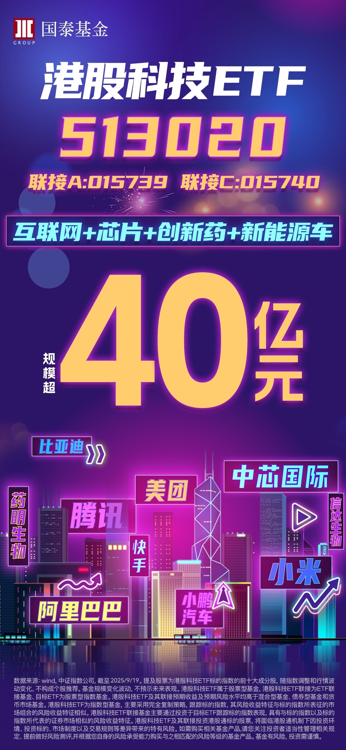 国泰港股科技ETF规模突破40亿元!一键布局港股科技核心资产!