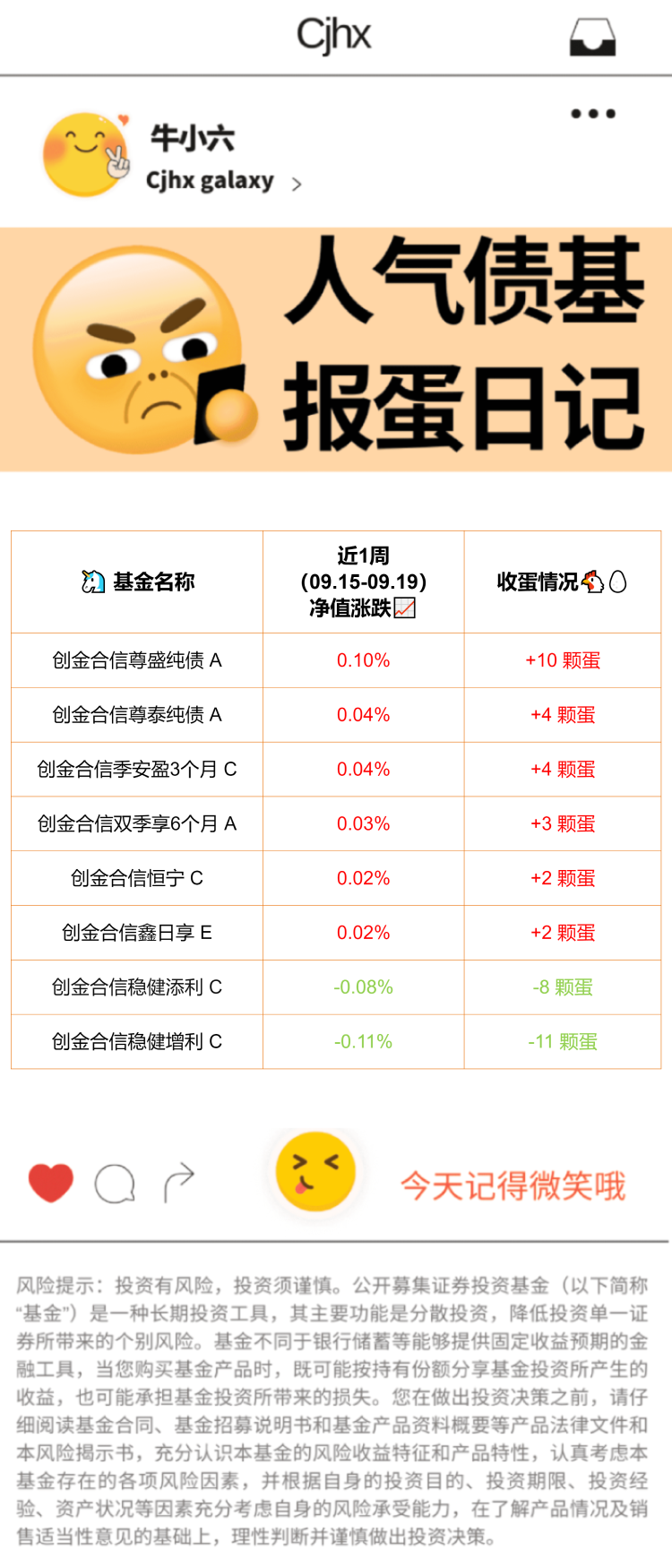 新的一天来咯!!→_→看看近一周(09.15-09.19)热门债基业绩如何吧?