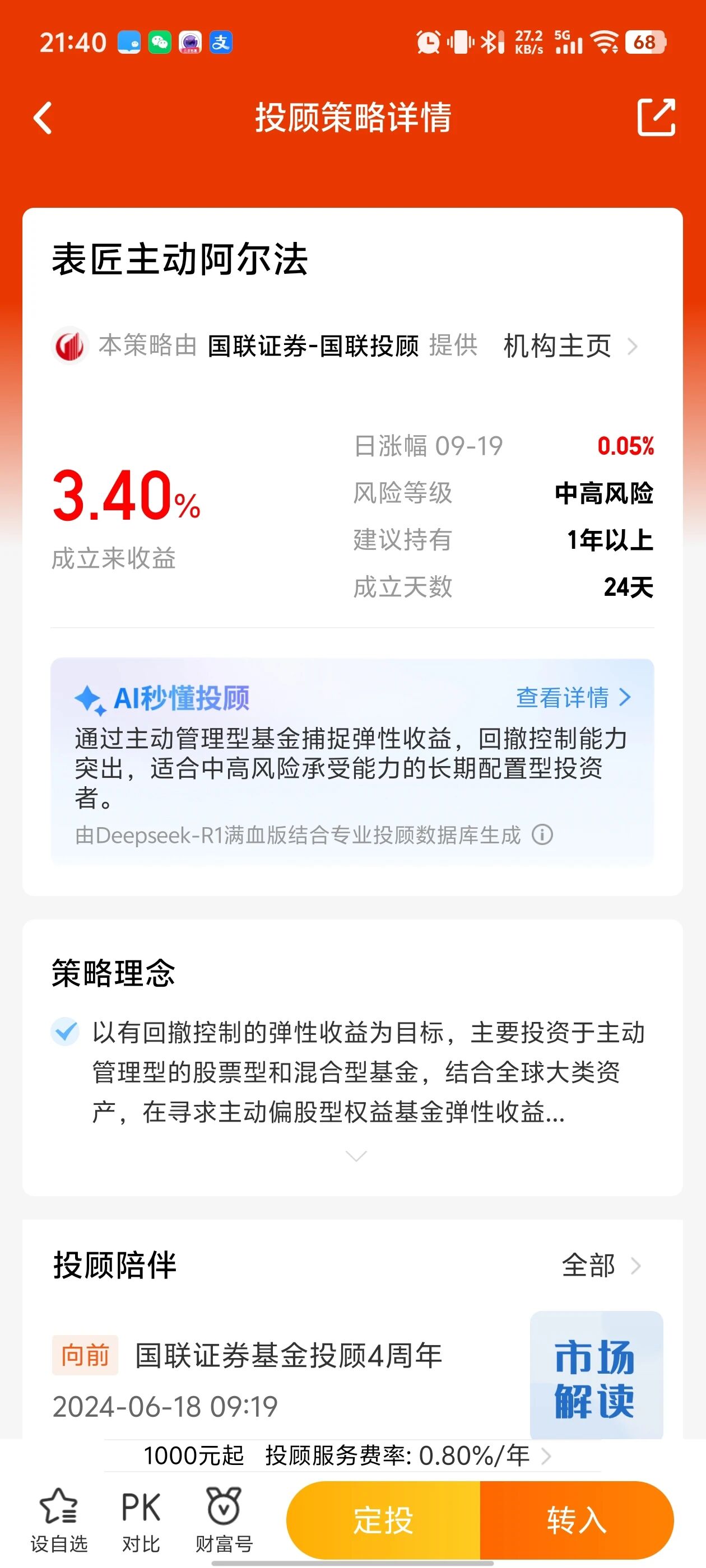 我所跟投的表匠主动阿尔法这个投顾也就在今年的这样一个时点应运而生。感兴趣的可以加一下自选关注,后面会持续有发车的信息。