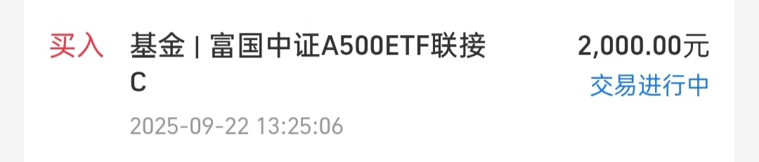 个人上车A500宽基指数基:$富国中证A500ETF发起式联接C(OTCFUND|022464)$,2000元。