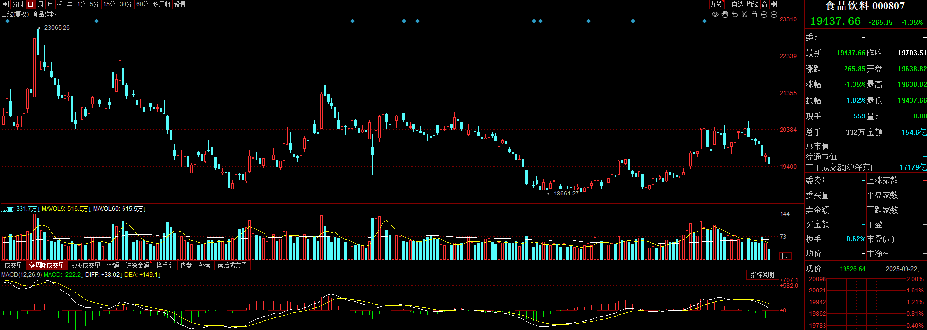 食品饮料震荡走低,指数超跌1%,日K线已经下挫到60日均线的支撑位置,这里是至关重要的,等待行情回暖后,我会继续做加法,当下先观望一下。