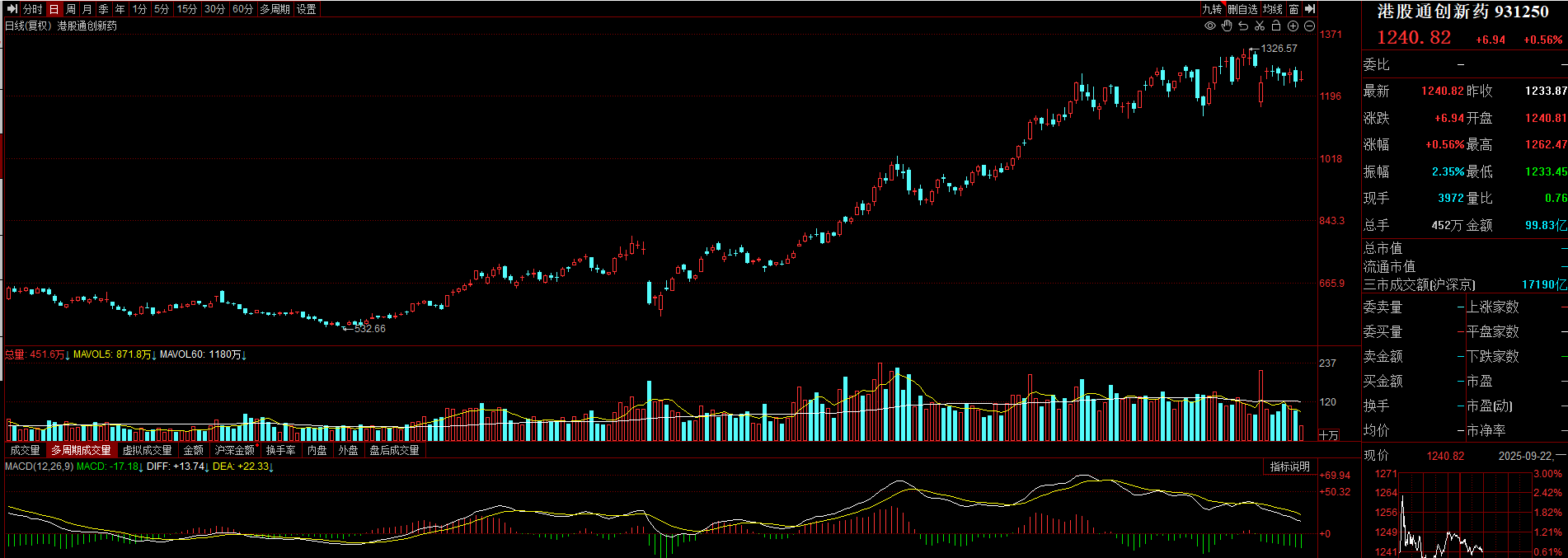 港股通创新药震荡走低,短期行情被5日均线压制,技术面上可能会去回踩60日均线的支撑,所以我今日先做点减法,等这一波回踩到位,再去找机会加回来。