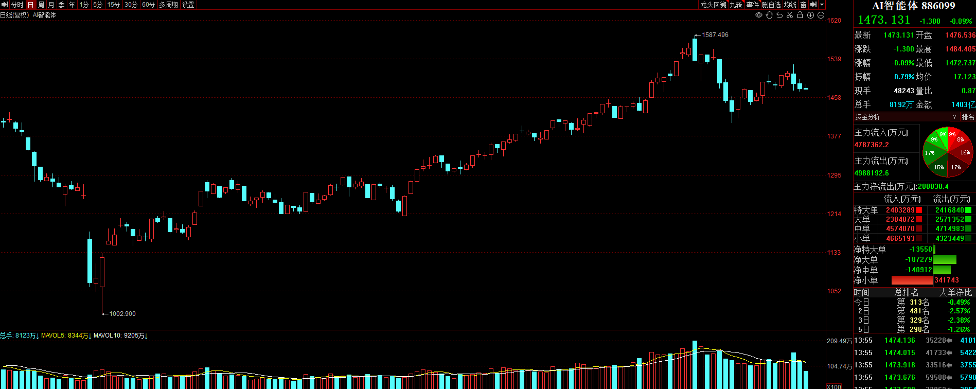 AI智能体窄幅震荡,目前指数微微翻红,目前行情在多头趋势线上,不过人工智能都大涨了,所以我相信AI智能体也会跟着涨,目前只是短时间问题,耐心格局就好。