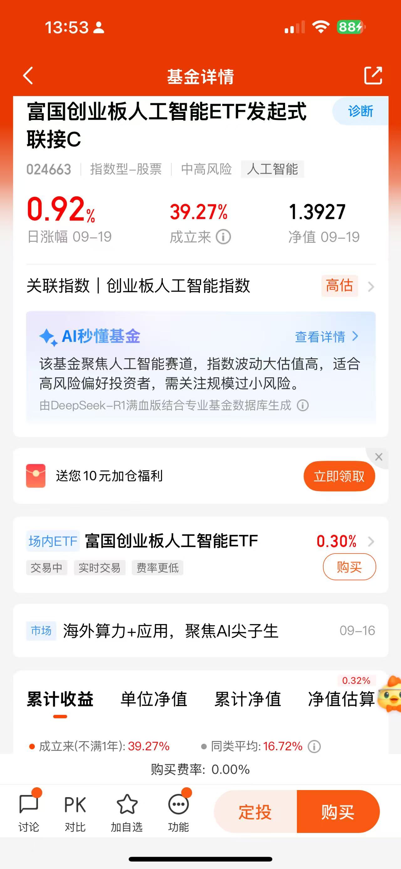 操作:顺势上车1000元$富国创业板人工智能ETF发起式联接C(OTCFUND|024663)$基金,该基金被动跟踪中证人工智能指数,简单来说,就是从芯片、算法到应用,一键打包AI全产业链的公司,特别省心。现在人工智能可是国家大力扶持的方向,前段时间刚出了《“人工智能+”行动意见》,明确提出:到2027年,智能终端普及率要超70%;到2030年要超过90%,智能经济将成为重要增长极,说明这绝不是短期热点,而是长期大趋势。