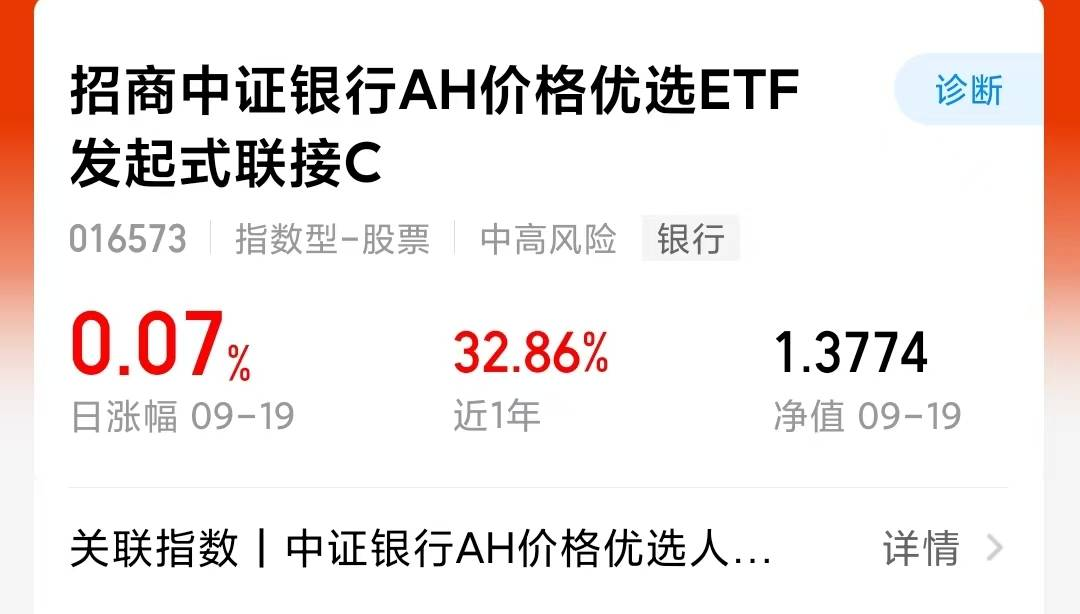 现如今市场高位开始出现震荡行情,咱就说现如今该怎么配置呢?我准备稳健配置一波低波动高股息的$招商中证银行AH价格优选ETF发起式联接C(OTCFUND|016573)$,毕竟银行股之前也经历了一段时间的调整之后,我感觉当前的股息率再度回暖回升,银行AH指数股息率回升至4.6%感觉配置的价值再次凸显咯~