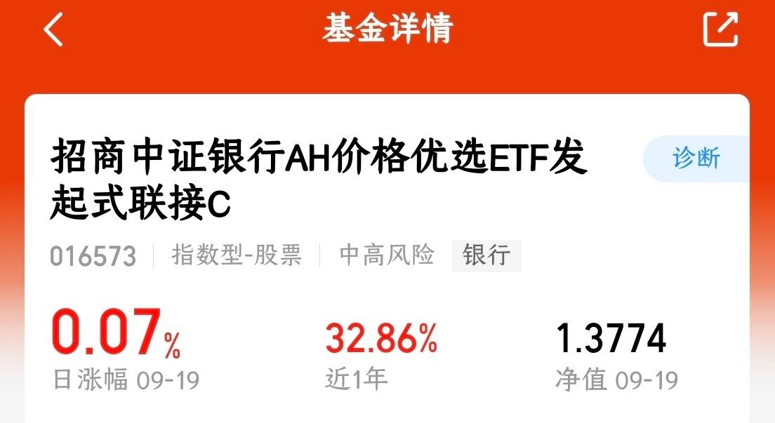 今天股市窄幅震荡,板块轮动加剧,近期银行板块持续下跌,但股息率回升至4.6%的吸引力明显增强。多家银行获得股东增持,显示机构对板块长期价值的认可。$招商中证银行AH价格优选ETF发起式联接C(OTCFUND|016573)$指数基金作为布局工具,能够分散个股风险,把握板块整体机会,非常适合喜欢红利的小伙伴啊。当前估值处于历史低位,具备较好的安全边际,适合分批建仓。我今天先上车了!