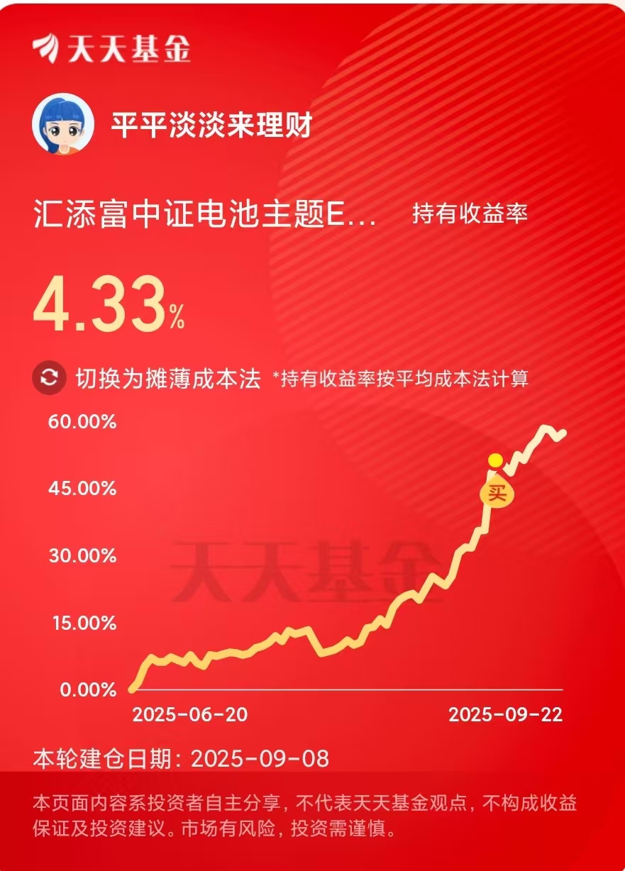 我目前持有体验还是不错截止目前收益率4.33%。要知道现如今电池行业储能订单爆满,在利好与技术的双轮驱动之下,固态电池行情即将迎来爆发。我感觉现在的电池行情就是8月份的光模块和芯片行情,所以说现如今行情我还是很有信心的~而且这个电池指数基跟踪的CS电池指数还有25%的储能概念,尤其是他的第一大权重股阳光电源权重接近15%,成分股更优质更集中,锐度高,更有弹性。