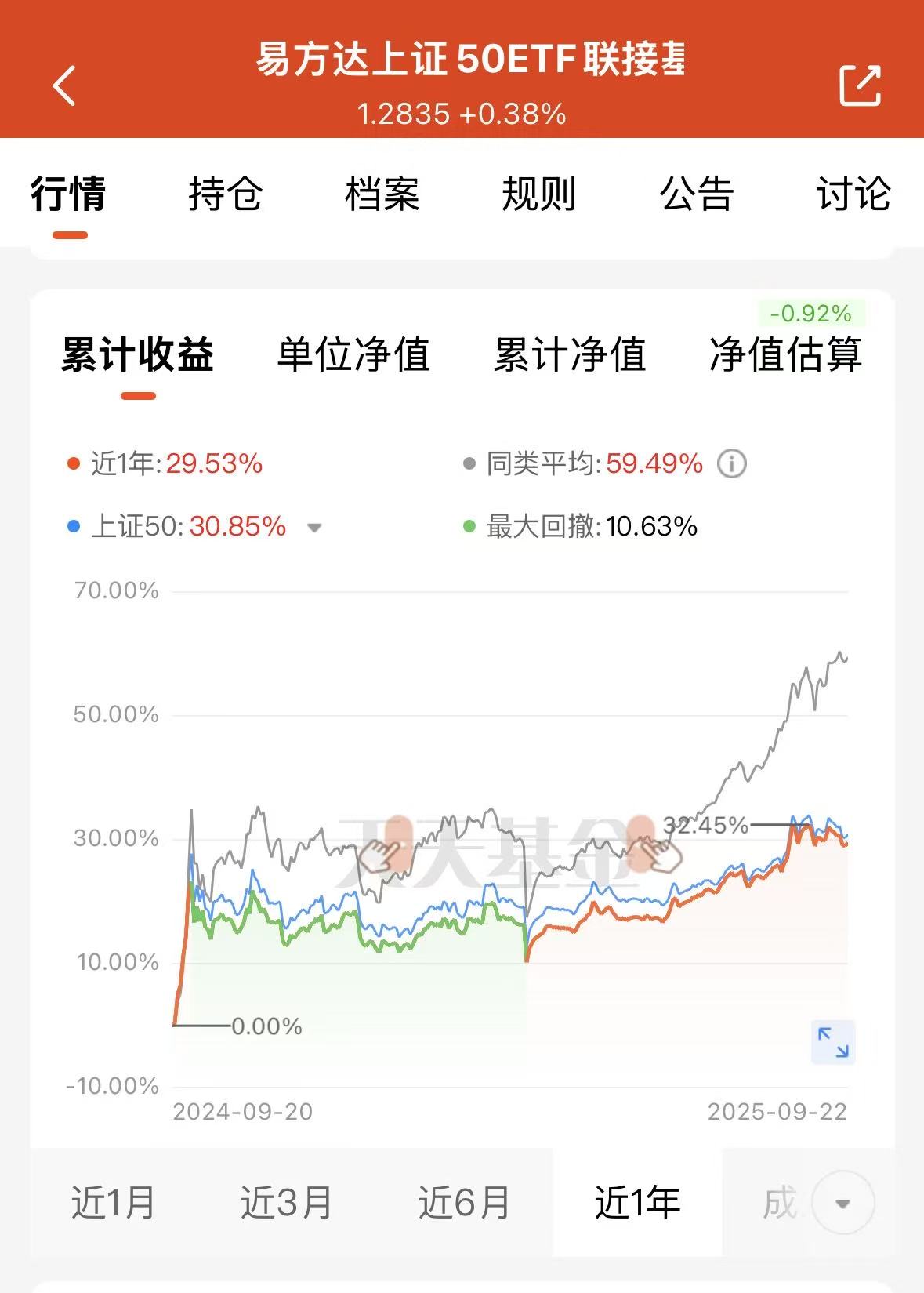 加仓$易方达上证50ETF联接基金C(OTCFUND|007380)$,现在估值-0.9%,龙头就是抗跌,这个指数基金就是大盘价值方向的。今天前面涨的狠的CPO、软件、机器人、创新药、通信都跌了,成长方向积累了很多涨幅,获利盘的压力是不小的,追涨我觉得风险不小。所以今天加的是大盘股方向。